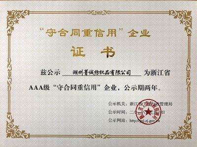 公司秉承“奮斗、合力、進步、利他”的價值觀,培養了一大批高素質的研發隊伍和管理團隊,連續被授予《國家高新技術企業》、《國家新型強捻化纖面料開發基地》、《省級高新技術企業研究開發中心》、《浙江省先進企業》、 《湖州市重點骨干企業》、 《湖州市專利示范企業》 等榮譽稱號。